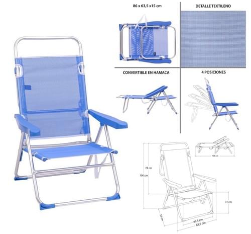 4 Posiciones alta- alum, 61x56x100cm Max 110kg.