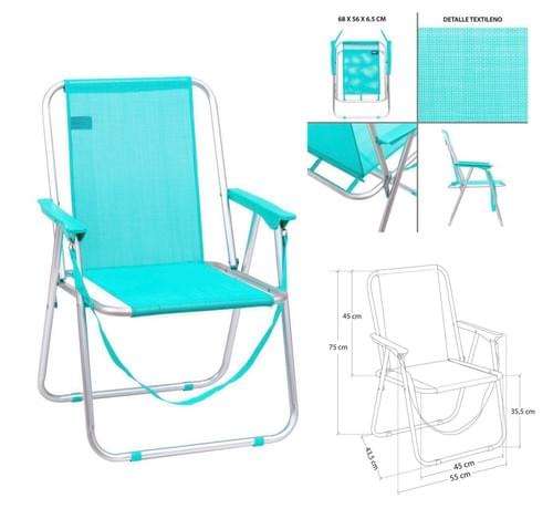 Silla Fija plegable aluminio aguamariana 47x54x75cm max 110kg